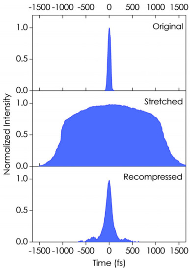 - Maine, P.; Strickland, D.; Bado, P.; Pessot, M.; Mourou, G. Generation of ultrahigh peak power pulses by chirped pulse amplification. IEEE J. Quantum Electron. 1988, 24, 398–403. [Google Scholar] [CrossRef]