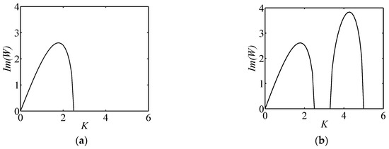 Without loss of generality, consider the case when both a and b are positive. If a = b, then it is trivial from the second order derivative test that |v| attains minimum at (0,0). The case when a > b will lead to a contradiction, so it remains to consider the case when a < b. From Equation (A1), it can be shown that which implies that . From the second order derivatives, it can be concluded that v is an EDRW when Ω0 = a + ib. On the other hand, u is an EDRW in the solution corresponding to the alternative root, Ω0 = a − ib. Hence, there must be a component with the configuration of an EDRW.