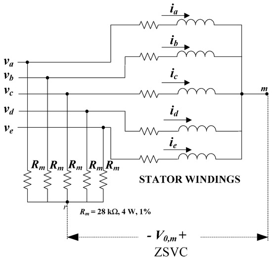 Connection realized to measure the ZSVC using a five-phase balanced resistor network to generate the artificial neutral point.