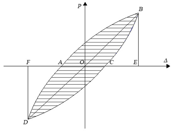 When the structure gets into the elastic-plastic state, its seismic performance mainly depends on the energy dissipation capacity. Figure 14 shows one loop of the hysteretic curve, by which the structural nonlinear energy absorption and dissipation capacity can be directly reflected from the shaded area ABCDA. Hence, the area that the P-Δ hysteresis curve envelops represents the structural ductility and energy-dissipating ability. The larger area that the hysteretic curve envelops, the more energy that structure dissipates, which is conducive to structural earthquake-resistant behavior.