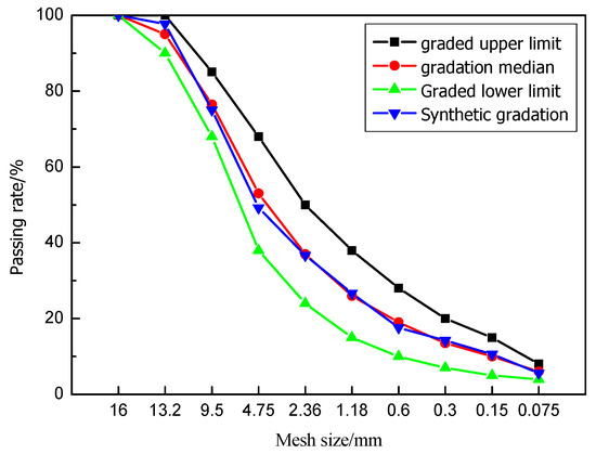 Conventional asphalt mixture used AC-13, which is widely used as the wearing course in China, and satisfied the specifications set forth by Chinese Ministry of Transportation (MOT), as shown in Figure 2.