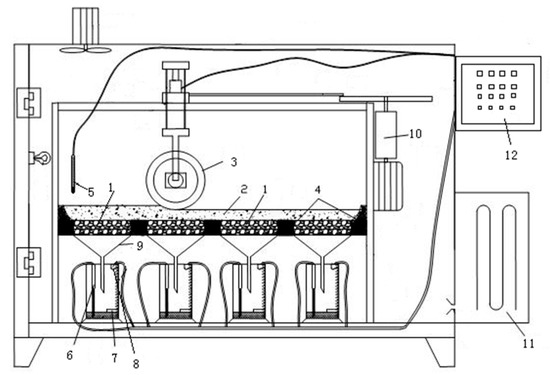 In this study, using a self-developed experimental device (as shown in Figure 7), the effect of the load of vehicles was simulated under different snowfall intensities and different temperature for quantitatively evaluating the snow-melting performance of the anti-icing asphalt pavement.