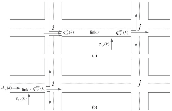Assume that the link r (as shown in Figure 1a) connects intersection i to intersection j. The traffic dynamics on r can be defined by the following equation: