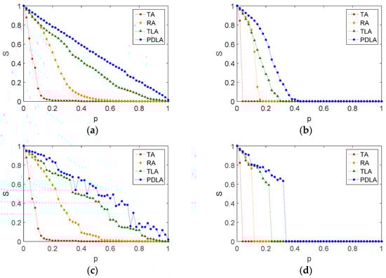 3.1.2. The Robustness of Network under PDLA Is Better Than That under TA, RA, or TLA