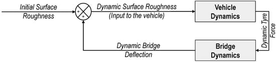 The roughness input to the vehicle is the sum of the initial surface profile of the pavement and the dynamic deflection of the bridge. This input excites the vehicle and results in dynamic tire forces. Finally, these forces are in turn applied to the bridge and cause larger dynamic displacements of the bridge [11].