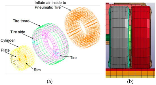 Pneumatic tire components adopted in (a) the vehicle model and (b) the tire model front section during a general time step.