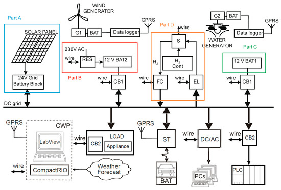 The hardware configuration outlined in Figure 1 was, together with the microgrid stability control structure, tested within one of the scenarios possible.
