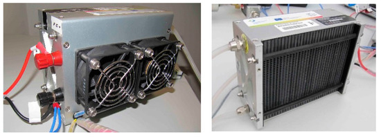 The research laboratory is also equipped with a fuel cell (FC) [32], an H-200 FC Stack (Singapore) by Horizon Fuel Cell Technologies (Figure 2). The H-200 exhibits the following parameters: a rated power of 200 W; performance of 28.8 V @ 7.2 A and 48 cells.