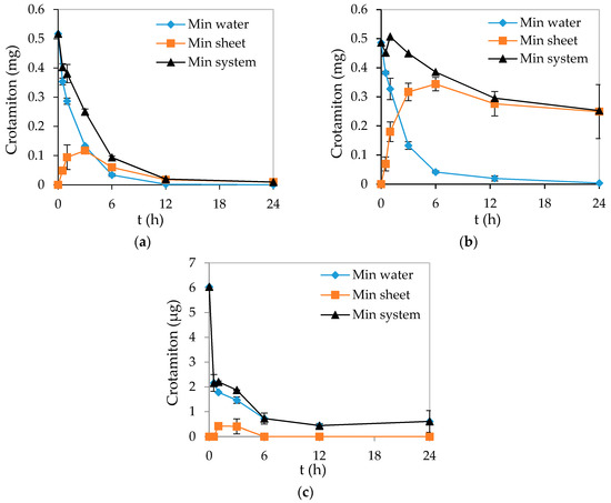 Similarly, the mass of crotamiton in the composite sheet (Min sheet) was calculated using Equation (2).