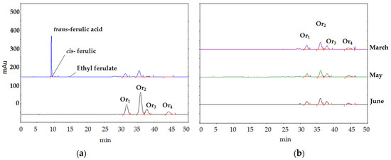 2.5. Quantitative Analysis Method of γ-oryzanol, FA, and Ethyl Ferulate