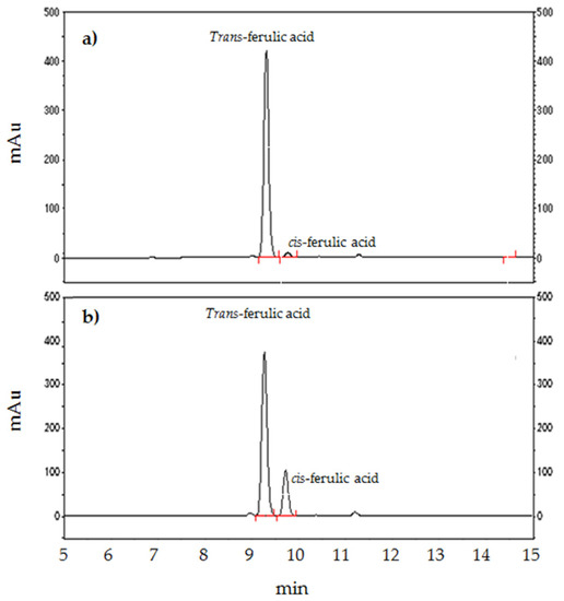 - Buranov, A.U.; Mazza, G. Extraction and purification of ferulic acid from flax shives, wheat and corn bran by alkaline hydrolysis and pressurised solvents. Food Chem. 2009, 115, 1542–1548. [Google Scholar] [CrossRef]