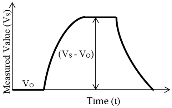 The first stage of the pattern recognition process, after collecting raw data, is data pre-processing. Data pre-processing is a procedure that involves extracting certain significant characteristics from the sensor response curves or transient response in order to produce a set of numerical data or feature for further processing [42]. Choosing the correct pre-processing technique is important because it may aid in the success of subsequent analysis and affect the performance of pattern recognition [43]. Most data pre-processing techniques are basically derived from a typical sensor response as shown in Figure 6. Vo is a measured value in clean ambient air or an initial value called the baseline, while Vs is the response value to odour or smell.