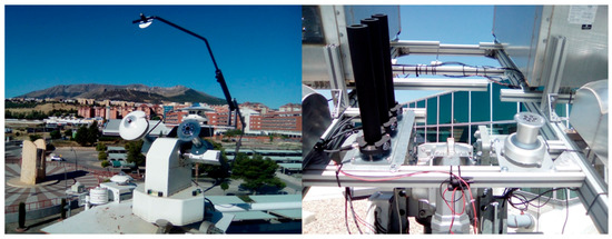 The experimental validation of the proposed equations was carried out at the CEAEMA of the University of Jaén [13]. The Centre is equipped with a weather station and irradiance sensors such as pyrheliometers and pyranometers that measure different components of the irradiance (i.e., global horizontal and normal, direct normal and diffuse horizontal), see Figure 1-left. III-V component solar cells (or isotypes) from Black Photon and a solar spectral irradiance metre (SolarSIM-D2) from Spectrafy Inc. are used to characterise the spectral composition and also measure the spectrally resolved direct normal irradiance and the atmospheric parameters that influence the spectrum, i.e., AOD at 500 nm and PW. The AM is also calculated from the sun’s zenith angle.