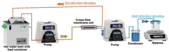 Schematic diagram of cross-flow pervaporation setup with flat-sheet membrane module.
