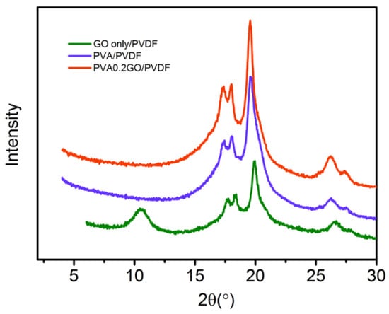 To determine whether GO sheets were dispersed as separated sheets in PVA matrix, XRD measurements (Empyrean X-ray diffraction system, PANalytical, 7602 EA Almelo, the Netherlands) was carried out by using Cu Kα radiation.
