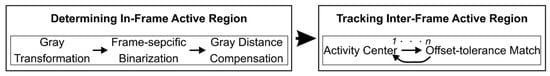 The automated activity region detection method consists of two main steps, as shown in Figure 1. In step 1, serial brain images are enhanced to extract cellular activity areas based on gray transformation and distance compensation. Cellular activity centers are located and matched within frames in step 2.