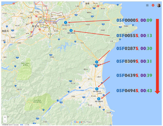 - Wang, J.D.; Hwang, M.C. A Novel Approach to Extract Significant Time Intervals of Vehicles from Superhighway Gantry Timestamp Sequences. In Proceedings of the 2017 IEEE International Conference on Applied System Innovation, Sapporo, Japan, 13–17 May 2017; pp. 1679–1682. [Google Scholar]