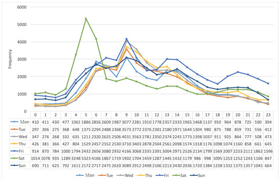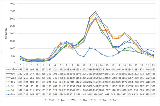 3.2. The Frequency Distribution of Vehicles vs. “Seven Days per Week”