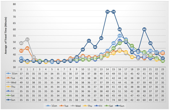 3.4. The Average of Travel Times vs. “Seven Days per Week”