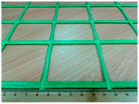 Glass-fiber-reinforced polymer (GFRP) grid with a 66 × 66 mm mesh size.