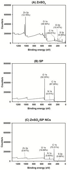 3.1. Preparation and Particle Characterizations of ZnSO4/SP NCs