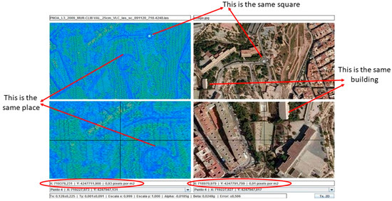 Y coordinates). In this case, we compared a picture obtained with classical photogrammetry PNOA (Plan Nacional de Ortofotografía Aérea) [