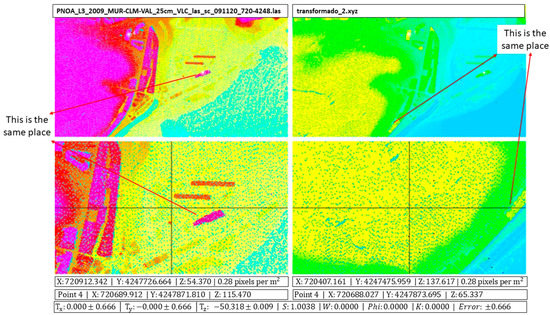 In this case, we are interested in obtaining planimetric precisions. We compared two images (see