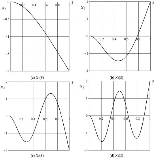 Here the functions and can be determined by using constraints of the physical and mathematical formulation of the vibration task: the function determines the natural and the function determines forced tail boom vibrations. Substitution of (6) in Equation (3) leads to the expression: