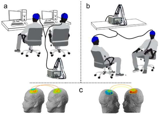 - Babiloni, F.; Astolfi, L. Social neuroscience and hyperscanning techniques: Past, present and future. Neurosci. Biobehav. Rev. 2014, 44, 76–93. [Google Scholar] [CrossRef] [PubMed]