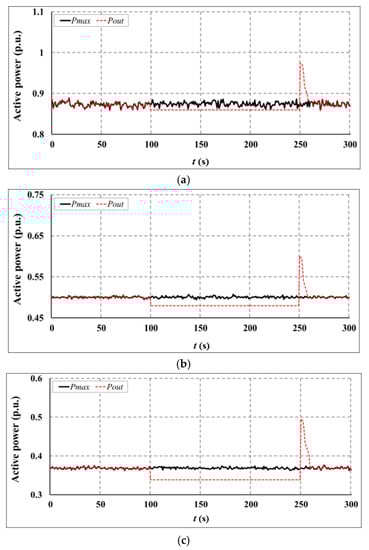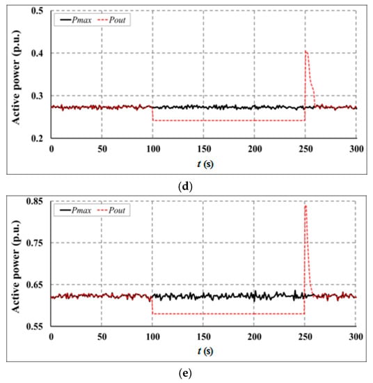 - Check the change in the system frequency caused by the loss of generators and disturbance. In addition, monitor the frequency deviation of the power system. If the frequency deviation problem (low frequency) occurs in the power system, then go to Step 5. Otherwise, if the measured frequency is higher than the nominal frequency, the system operator provides a new command to the de-loaded control and reduces the output of the conventional generators. When the power system is stable, return to Step 3.