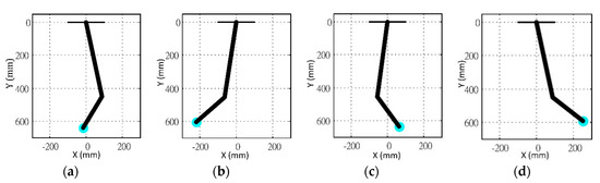 Illustrative motion sequence (a–d) of the two-link model with the closed-loop control method.