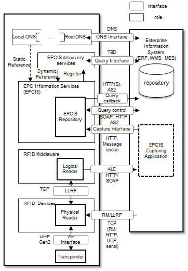 - Traub, K. (Ed.) The EPCglobal Architecture Framework Version 1.4; Ratified Standard; EPCglobal: Beijing, China, 2010. [Google Scholar]