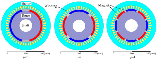 - Zhu, Z.Q.; Howe, D. Instantaneous Magnetic Field Distribution in Brushless Permanent Magnet DC Motors. I. Open-Circuit Field. IEEE Trans. Magn. 1993, 29, 124–135. [Google Scholar] [CrossRef]