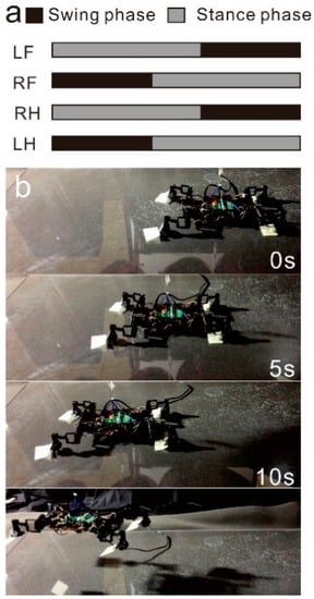 - Chen, J.J.; Peattie, A.M.; Autumn, K.; Full, R.J. Differential leg function in a sprawled-posture quadrupedal trotter. J. Exp. Biol. 2006, 209, 249–259. [Google Scholar] [CrossRef] [PubMed]