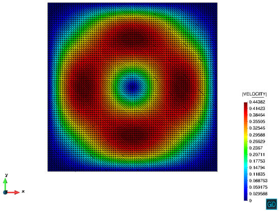 Computational mesh and velocity field at t = 1 s. Solution obtained using the semi-explicit Runge–Kutta scheme.