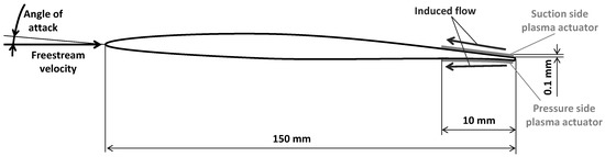 Sketch of the blade section with the modeling of plasma actuators.
