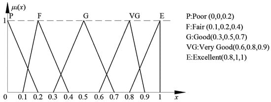 where is a fuzzy linguistic term denoted by , when , which can be transformed into a TFN according to the membership functions in Figure 2; is an interval number that can be described as when and is a real number when .
