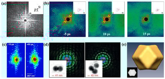 - Clark, J.N.; Beitra, L.; Xiong, G.; Fritz, D.M.; Lemke, H.T.; Zhu, D.; Chollet, M.; Williams, G.J.; Messerschmidt, M.M.; Abbey, B.; et al. Imaging transient melting of a nanocrystal using an X-ray laser. Proc. Natl. Acad. Sci. USA 2015, 112, 7444–7448. [Google Scholar] [CrossRef] [PubMed]