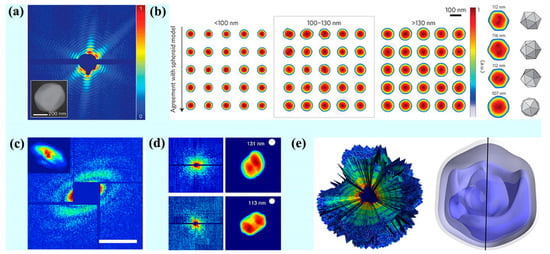 Worthy of noted, J. Miao and colleagues developed a single-shot 3D imaging method for high-symmetry objects and demonstrated the idea on gold nanoparticles with X-ray lasers [131]. Figure 2e shows a 3D image of a nanoparticle from SACLA. By using the symmetry of gold nanoparticles, 48 diffraction patterns were generated. The 3D image was obtained after the finding of common arcs and phase retrieval. The final resolution was determined to be ~5.5 nm.