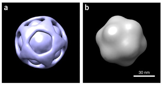 - Nakagawa, A.; Miyazaki, N.; Taka, J.; Naitow, H.; Ogawa, A.; Fujimoto, Z.; Mizuno, H.; Higashi, T.; Watanabe, Y.; Omura, T.; et al. The Atomic Structure of Rice dwarf Virus Reveals the Self-Assembly Mechanism of Component Proteins. Structure 2003, 11, 1227–1238. [Google Scholar] [CrossRef] [PubMed]