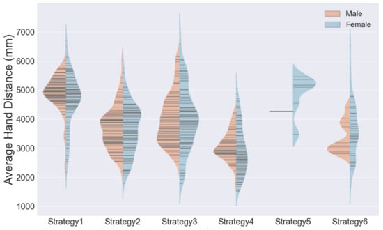 In Figure 11, we see that hand distance might be an effective way to compare different hand strategies. Strategy 2 performs the best on testing for separability. The hand distance for Strategy 4, for example is significantly lower than the rest. This is because this tracing style represents people who use the metaphor of an imaginary object to represent music. This imaginary object seldom changes its physical properties—its length and breadth and general size is usually maintained.