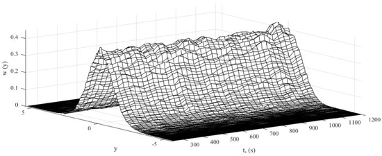 Figure 4 illustrates the estimation of time dependences of PDF w(y) for sampled values of the signal, shown in Figure 2 (top).