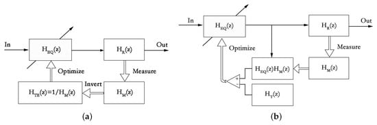 (a) Indirect and (b) direct equalizer design methods classification as reported in [55], where represents the equalization filter, is the reproduction channel, is the measured impulse response, and and are the target functions.