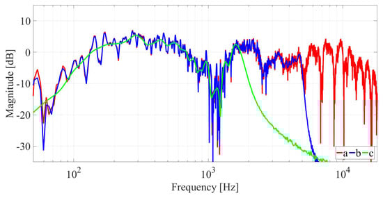 Kautz filter applied on a measured RTF: (a) RTF; (b) Kautz model of order 1000; (c) Kautz model of order 300.