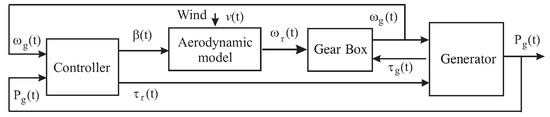 The aerodynamic model defining the aerodynamic torque provides the signal, which is a nonlinear function of the wind speed , and it is not highlighted in Figure 1 since included in the ‘Aerodynamic model’ block. This measurement is very difficult to be acquired correctly, as described in [25].