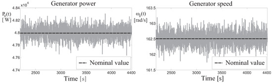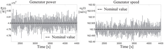 Figure 11 depicts the perturbed signals representing the generator speed and power , with respect to their nominal values. Also in this case, the main wind turbine variables remain bounded around the reference values, thus assessing the overall system stability in simulation, even in the presence of modeling errors and disturbance.