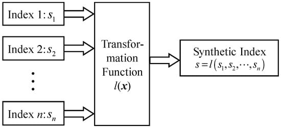 Given a network at time t, where is the set of nodes and is the set of links. The observed links, E, are randomly divided into training, , and probe, , sets, where and . Link prediction aims to predict missing links at current network or new links for a future time []. Link prediction combination methods fuse several similarity indices and obtain a synthetic index and can be described in mathematic as follows. Let be the scores of existing links as given by n structural similarity indices, and follow probability density function (pdf) . Let be the scores of nonexistent links as n structural similarity indices, and follow . We need to find the transformation function, , and obtain the synthetic score, , that maximizes evaluation metrics. Figure 1 is the diagram of combination methods.