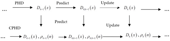 Compared with the PHD filter, CPHD not only propagates the intensity function but also the cardinality distribution, which makes the estimation deviation of the target number small and the accuracy improved [25].The relationship between PHD and CPHD is shown in Figure 3.