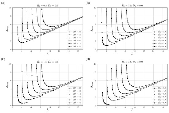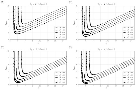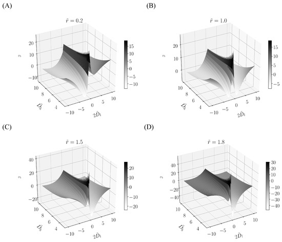The relationship between and is calculated with Equations (20) and (21) when varied and is shown in Figure 8. Figure 8 (A), (B), (C), (D) for respectly.