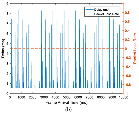 Delay and packet loss rate (PLR) for proposed WLAN structure with conventional enhanced distributed channel access (EDCA). (a) 9 VR devices with max number of retx = 2; (b) 9 VR devices without retx.